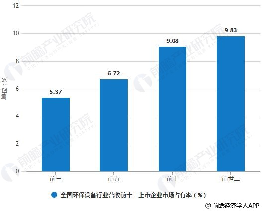 2017年全國環(huán)保設備行業(yè)營收前十二上市企業(yè)市場占有率統(tǒng)計情況
